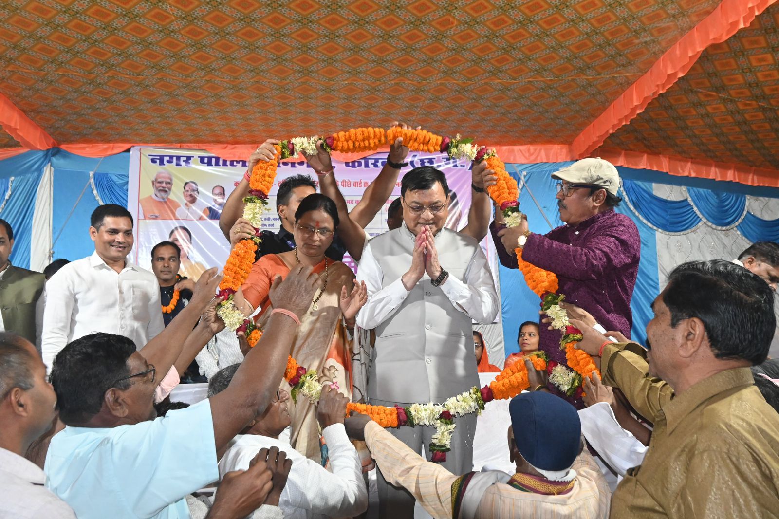 उद्योग मंत्री श्री लखनलाल देवांगन के मुख्य आतिथ्य व महापौर श्रीमती संजूदेवी राजपूत की अध्यक्षता में आयोजित कार्यक्रमों में 03 करोड़ रू. के विभिन्न विकास कार्यो का उनके हाथों किया गया भूमिपूजन व लोकार्पण ।