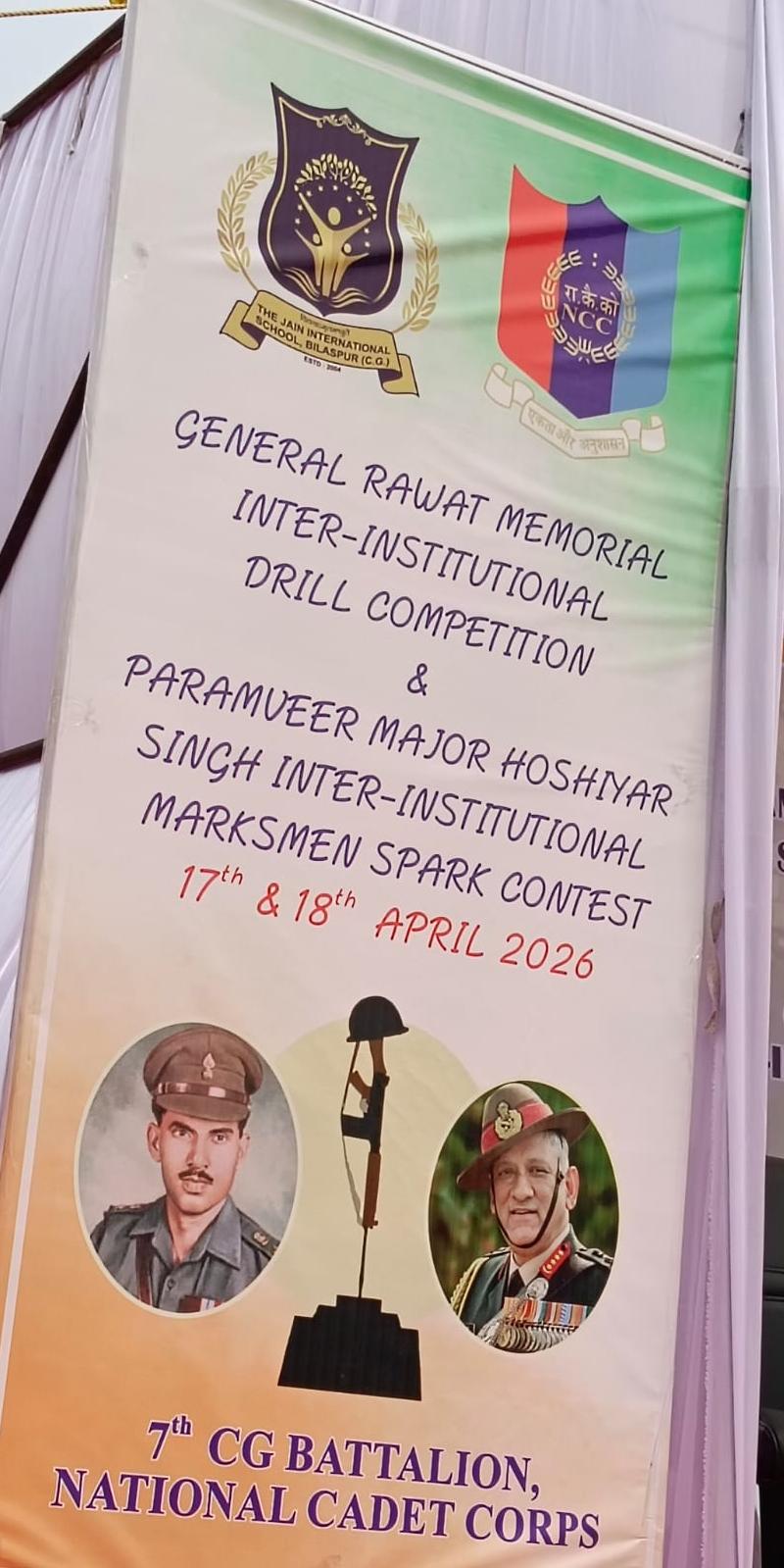 शहर के प्रतिष्ठित जैन इंटरनेशनल स्कूल में 7 छ.ग. बटालियन एन.सी.सी के तत्वावधान में मेजर होशियार सिंह स्मृति शूटिंग एवं जनरल रावत इंटर-इंस्टिट्यूशनल ड्रिल प्रतियोगिता का आयोजन किया गया।