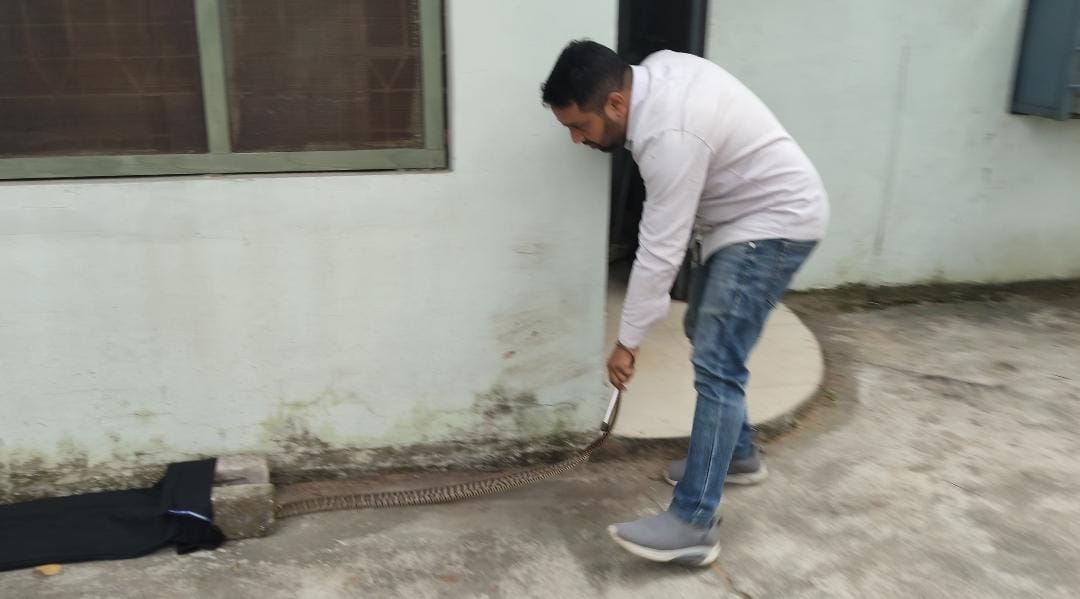 आखिरकार फिर इसकी जानकारी वाइल्डलाइफ रेस्क्यु टीम अध्यक्ष जितेंद्र सारथी को दिया गया फिर थोड़ी ही देर बाद पहुंच कर खिड़की में फंसे धामन सांप को जितेंद्र सारथी ने बड़ी बहादुरी से बाहर निकाला और थैले में डाला तब जाकर सभी ने राहत भरी सांस लिया और रेस्क्यु टीम का धन्यवाद ज्ञापित किया।