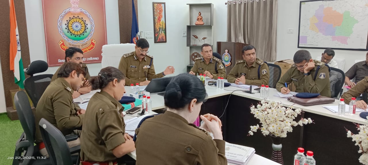 दिनांक 22 जनवरी,2025 को डॉ. संजीव शुक्ला, पुलिस महानिरीक्षक, बिलासपुर रेंज द्वारा रेलवे सुरक्षा बल, शासकीय रेल पुलिस एवं बिलासपुर रेंज के रेल लाईन से जुडे जिले बिलासपुर, रायगढ़, कोरबा, जांजगीर-चांपा, गौरेला-पेण्ड्रा-मरवाही एवं सक्ती के पुलिस अधीक्षकों की बैठक ली गई।