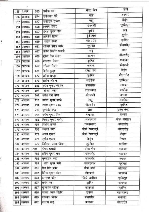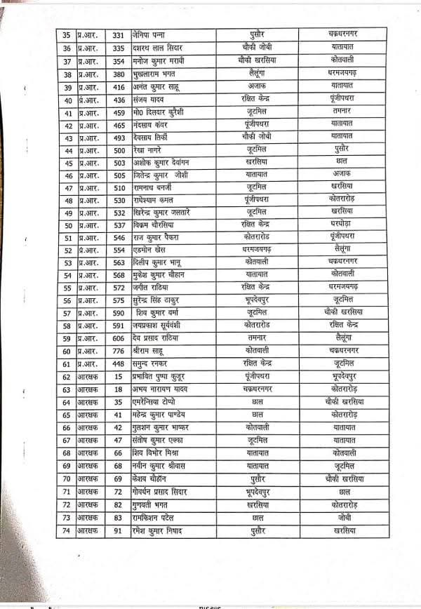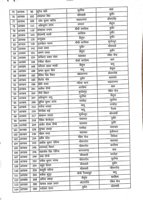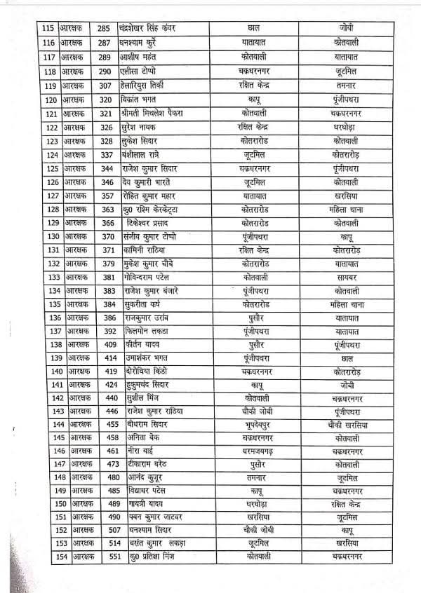 रायगढ़ : BIG BREKING:- रायगढ़ पुलिस महकमे में बड़ा फेरबदल; SSP ने जारी किया आदेश, 219 पुलिसकर्मियों के प्रभार बदले..