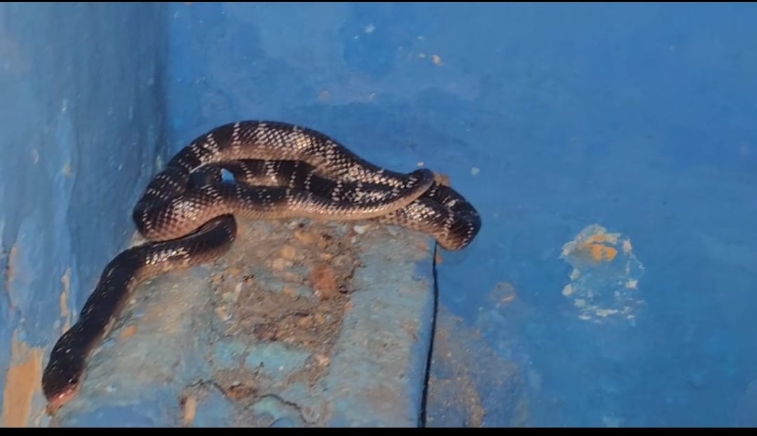 बिना समय गँवाए पूरी सावधानी और कुशलता से कॉमन करैत को रेस्क्यू किया गया।