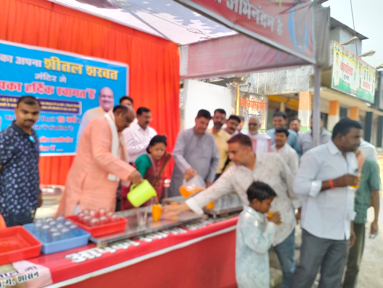 जयसिंह अग्रवाल ने इस मौके पर राहगीरों को शीतल शरबत पिलाया और स्वयं भी शरबत का स्वाद चखा ।