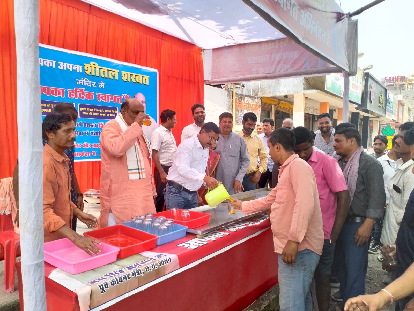शीतल शरबत मंदिर का विधिवत शुभारंभ जयसिंह अग्रवाल ने राहगीरों को शरबत पीलाकर किया।