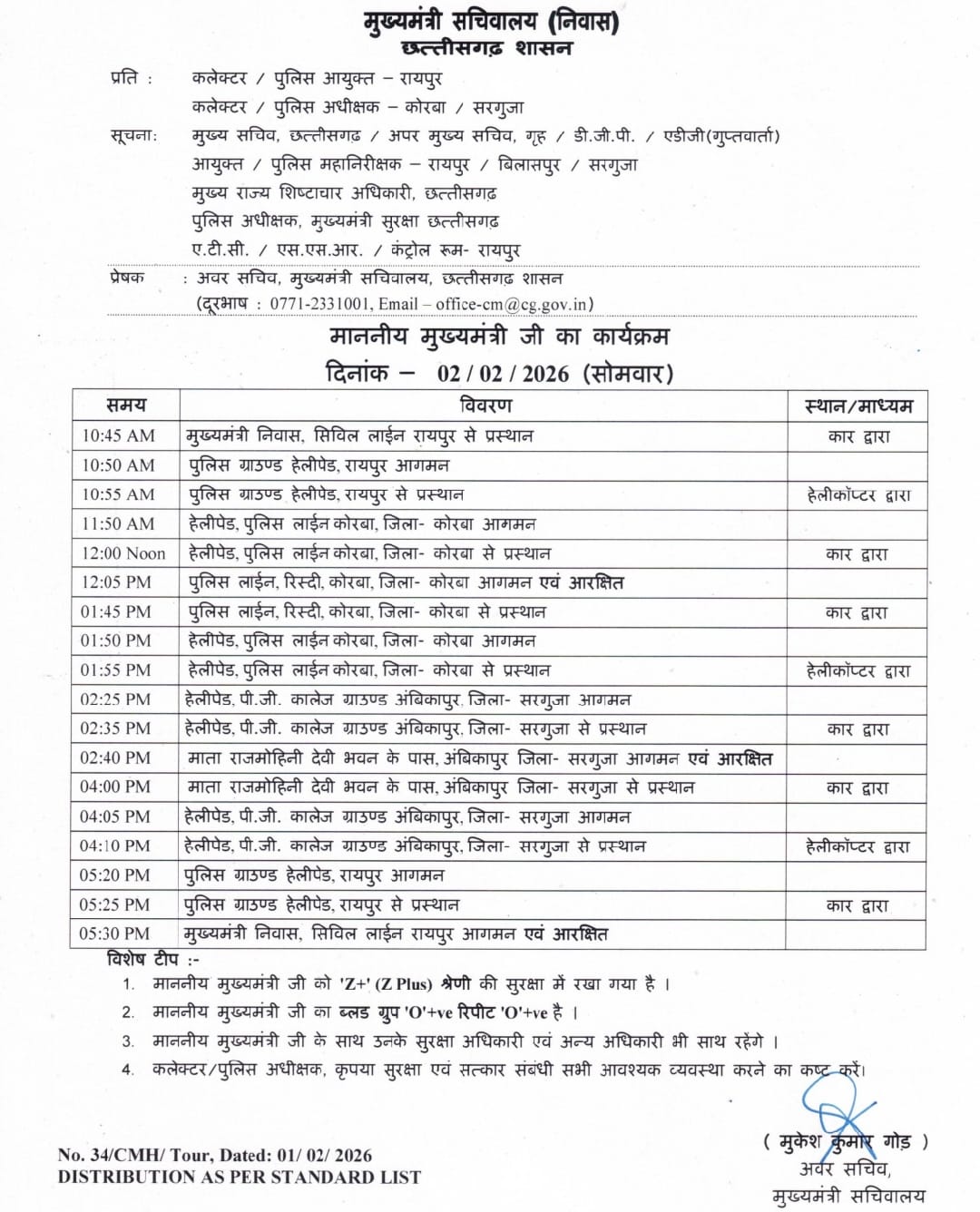 कार्यक्रम स्थल पुलिस लाइन के सामने, सिंघिया रोड, कोरबा निर्धारित किया गया है, जहां सुबह 10:00 बजे से भूमिपूजन कार्यक्रम प्रारंभ होगा। आयोजन को लेकर भाजपा जिला संगठन द्वारा तैयारियां अंतिम चरण में हैं।