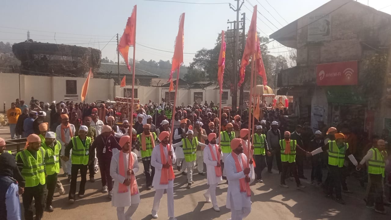 राजौरी के जवाहर नगर से आयोजित शोभा यात्रा को मुख्य रूप से पठानकोट से आए स्वामी गुरदीप गिरी जी महाराज ने हरि ध्वजारोहण कर