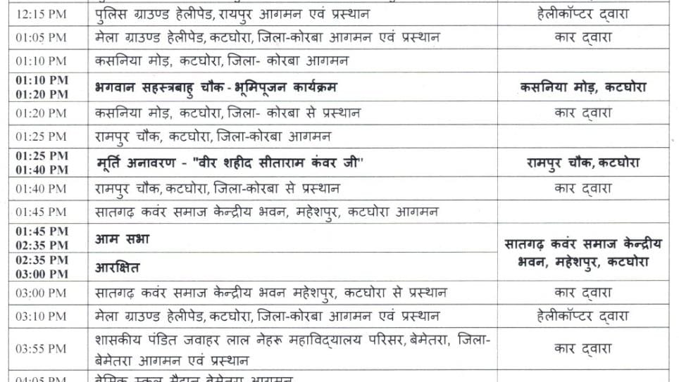 प्रदेश के मुख्यमंत्री श्री विष्णु देव साय आज कटघोरा में सामाजिक कार्यक्रम में सम्मिलित होंगे