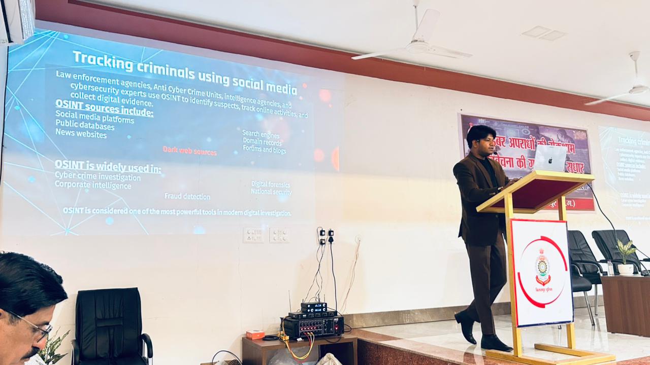 उन्होंने विभिन्न प्रकार के साइबर फ्रॉड को लाइव डेमो के जरिए प्रतिभागियों को दिखाया और डार्क नेट की भी विस्तृत जानकारी अपने सत्र के दौरान दी।