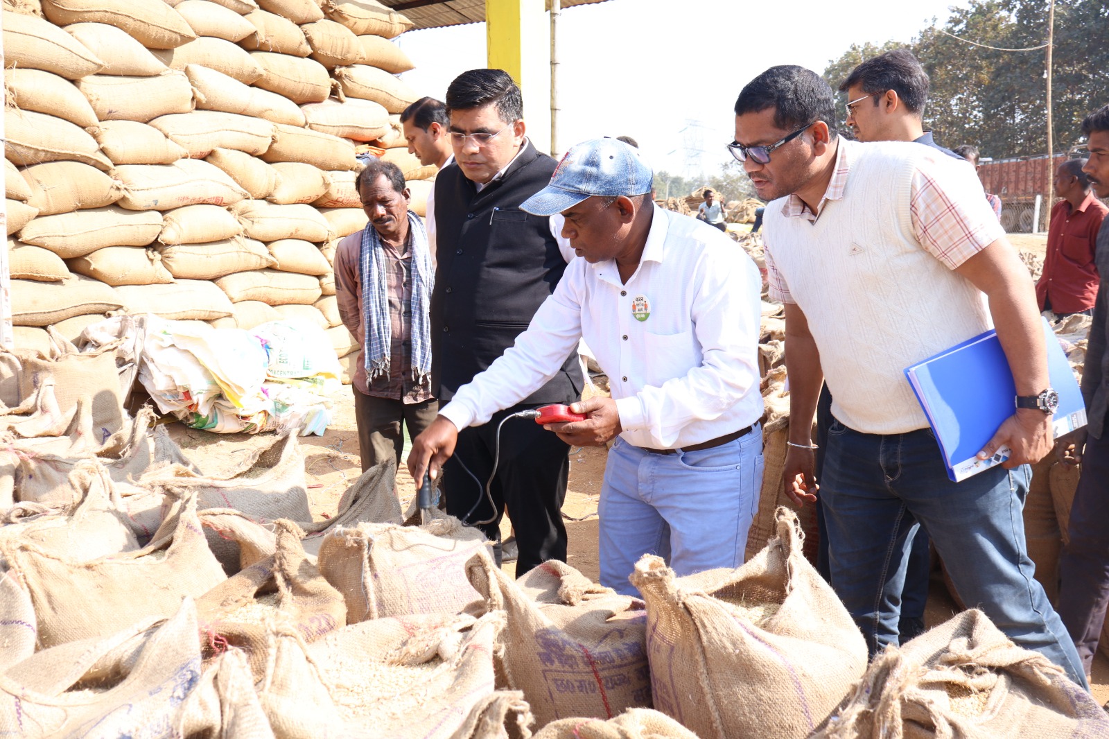 साथ ही धान का नमी परीक्षण एवं वजन कराकर मौके पर भौतिक सत्यापन भी किया। उन्होंने निर्देशित किया कि पात्र किसानों को धान विक्रय में किसी प्रकार की परेशानी नहीं होनी चाहिए, सभी अधिकारी इस बात का विशेष ध्यान रखें।