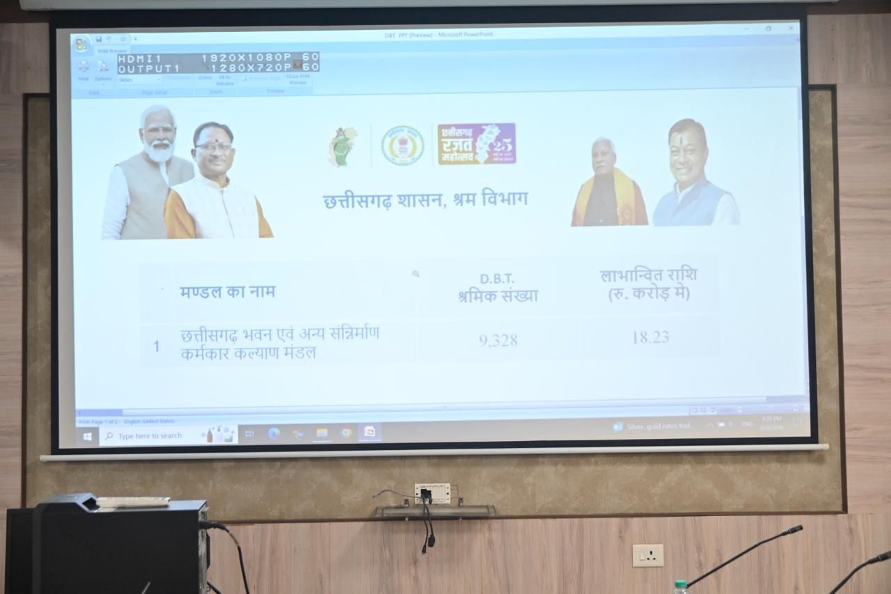 विष्णुदेव सरकार का श्रमिकों को तोहफा, श्रम मंत्री लखन लाल देवांगन और बीओसी अध्यक्ष रामप्रताप सिंह ने बटन दबाकर 9328 श्रमिकों के खाते में 18.23 करोड़ की राशि की अंतरित।