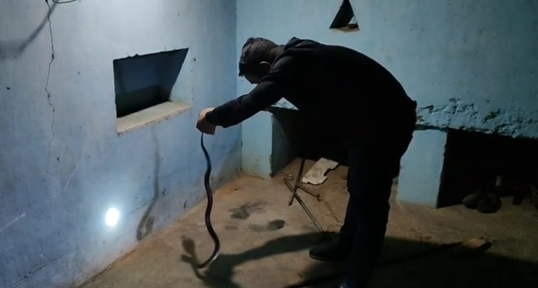 कोरबा : बाकी मोंगरा में आधी रात कोबरा सांप का रेस्क्यु, 11 घंटे से दहशत में था पूरा परिवार, कोठी में रखे धान के बोरे के बीच छुप