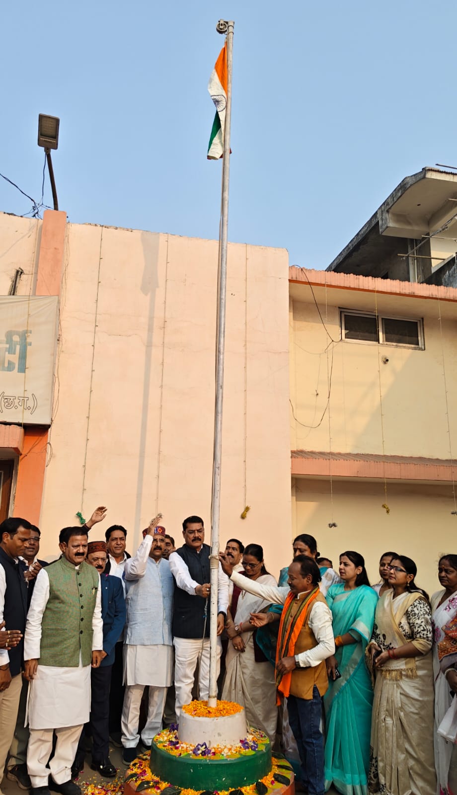 जिला स्तरीय समारोह में राजस्व मंत्री टंक राम वर्मा ने किया ध्वजारोहण।