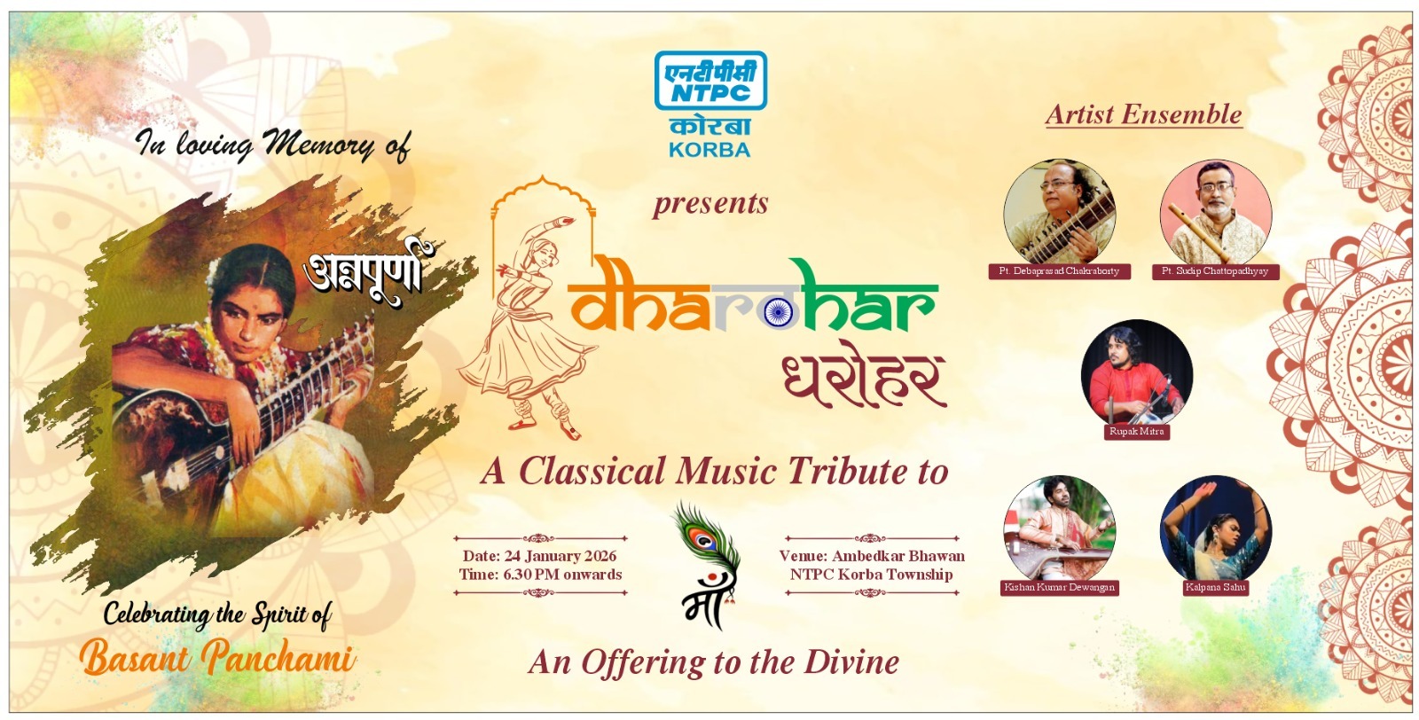 कोरबा : एनटीपीसी कोरबा प्रस्तुत करता है “धरोहर” – अन्नपूर्णा देवी की विरासत को समर्पित दिव्य भारतीय शास्त्रीय संगीत संध्या।