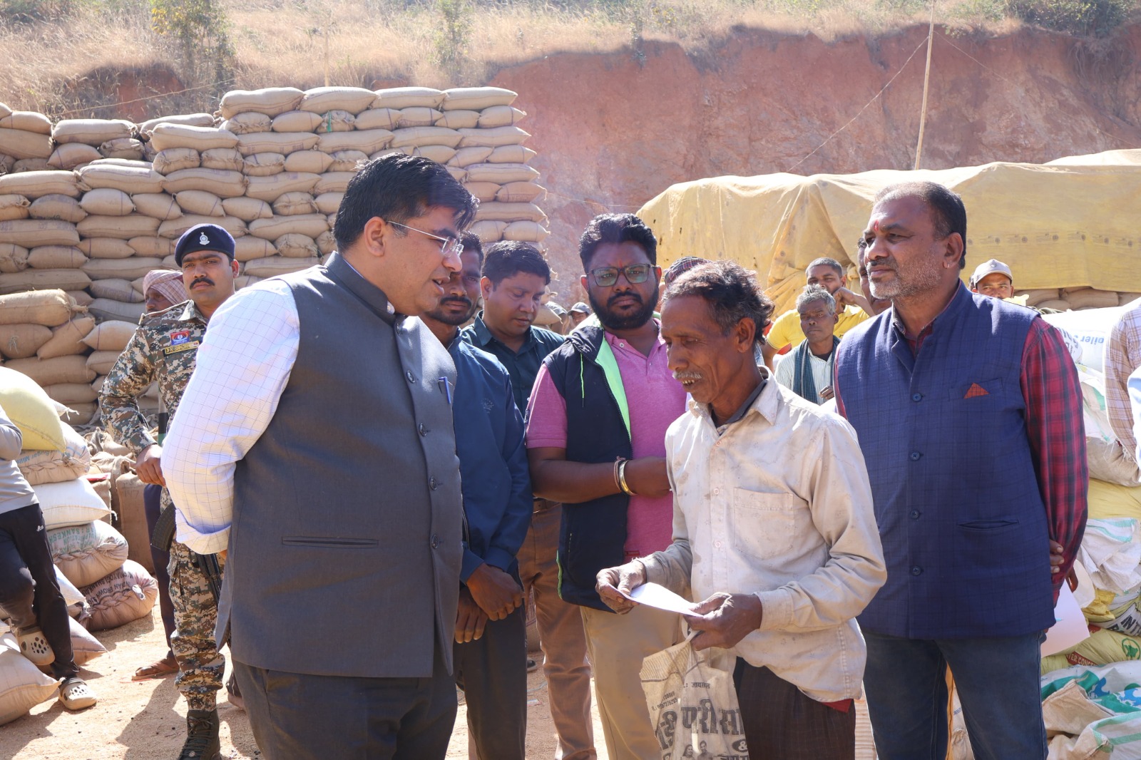 कोरबा : धान खरीदी में पारदर्शिता सुनिश्चित करने कलेक्टर का औचक निरीक्षण।