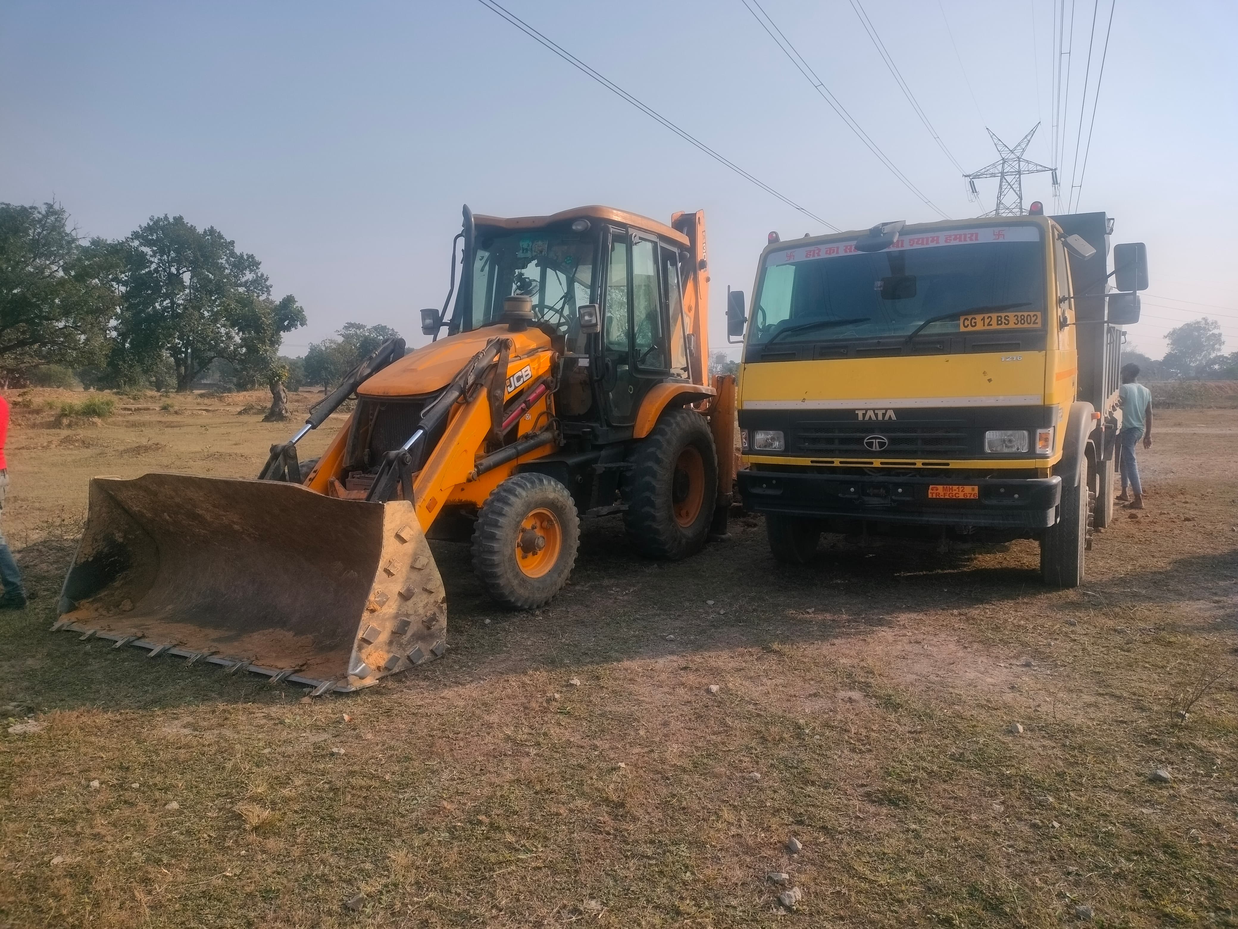 कोरबा : बांधाखार में शासकीय भूमि पर अवैध रूप से मिट्टी पटाई कार्य में लगे जेसीबी व टीपर वाहन की हुई जब्ती।