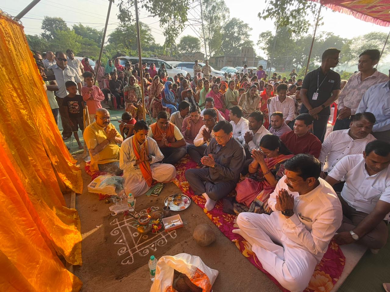 दर्री जोन के सुमेधा बस्ती में आयोजित भूमिपूजन कार्यक्रम के दौरान मंत्री श्री देवांगन ने 03 नये विकास कार्यो का भूमिपूजन किया तथा तत्काल कार्य प्रारंभ कर पूर्ण गुणवत्ता के साथ कार्य संपादन करते हुए समय सीमा में कार्यो को पूरा करने के निर्देश अधिकारियों को दिए।