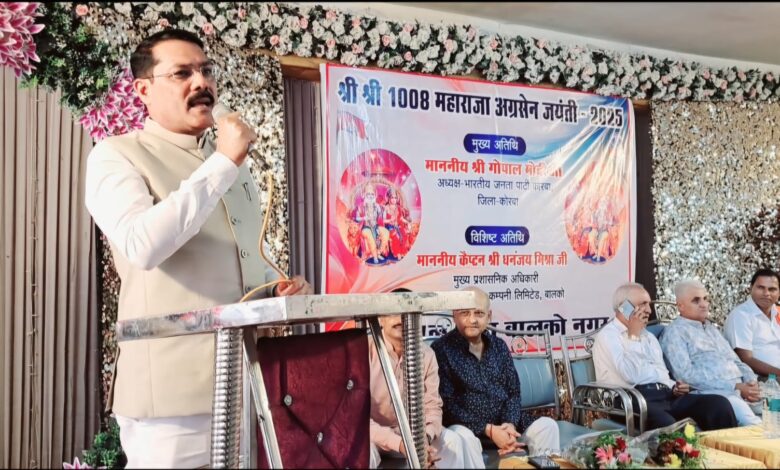 कोरबा : “अग्रवाल सभा द्वारा महाराजा अग्रसेन जयंती का भव्य आयोजन, मुख्य अतिथि के रूप में शामिल हुए भाजपा जिलाध्यक्ष गोपाल मोदी”