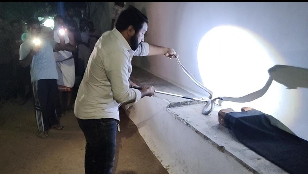 कोरबा : जहरीले नाग के फनकार की आवाज़ सुनकर कुत्ते डर से भौंकने लगे, वही जितेंद्र सारथी को रेस्क्यु करते देख लोग डर से कांप उठे।