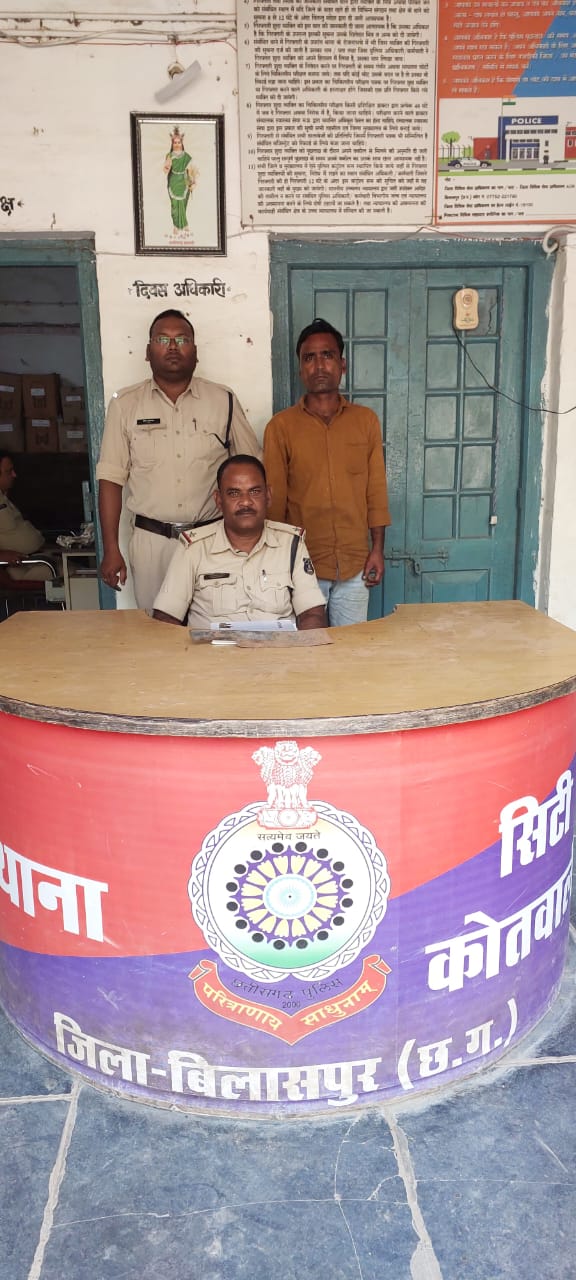 बिलासपुर। विवरणः- मामले का संक्षिप्त विवरण इस प्रकार है कि श्रीमान पुलिस अधीक्षक महोदय श्री संतोष कुमार सिंह द्वारा पर क्षेत्र में बढते अपराधो एवं चाकूबाजी की घटनो पर अंकुश लगाने तथा आदर्श आचार संहिता लागू होने पर क्षेत्र में अवैधानिक गतिविधियो पर निगाह रखने निर्देशित किया गया है जिसके परिपालन में श्रीमान अतिरिक्त पुलिस अधीक्षक शहर, श्री राजेन्द्र जायसवाल तथा नगर पुलिस अधीक्षक कोतवाली श्रीमती पूजा कुमार के मार्गदर्शन में थाना प्रभारी निरीक्षक उत्तम साहू के नेतृत्व में थाना सिटी कोतवाली पुलिस द्वारा दिनांक 04.11.2023 को आरोपी नरेश सिंह उर्फ लाल बहादुर पिता स्व. नान्हू सिंह उम्र 37 वर्ष निवासी वार्ड नं. 11 कोतमा कोलियारी अनुपपुर थाना कोतमा जिला अनुपपुर (म.प्र.), हा.मु. गुड्डू होटल सिम्स चौक बिलासपुर थाना कोतवाली जिला बिलासपुर (छ.ग.) को सिम्स हॉस्पिटल के गेट नं. 03 के पास लोहे का धारदार कत्ता लेकर लोगो को डराते धमकाते पकडा गया, जिसे धारा 25, 27 आर्म्स एक्ट के तहत गिरफ्तार कर न्यायिक रिमाण्ड पर भेजा गया।