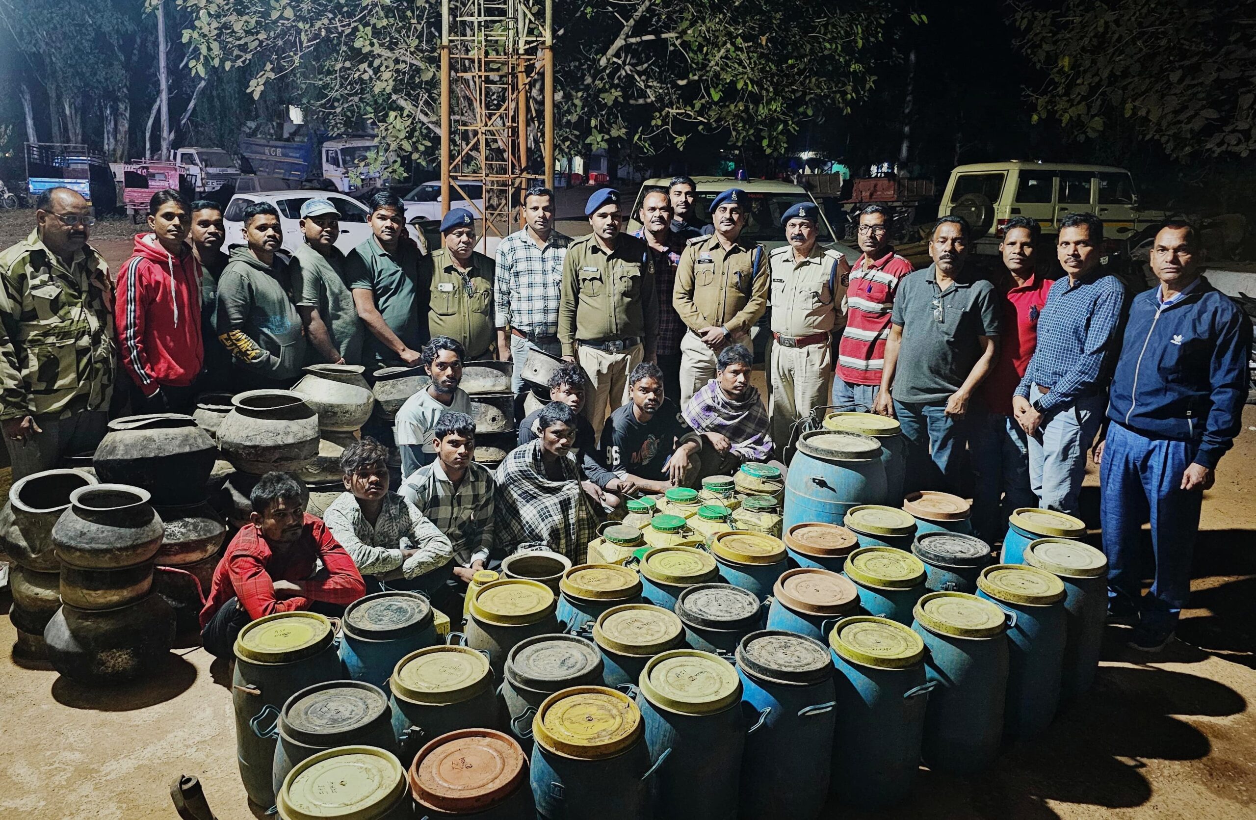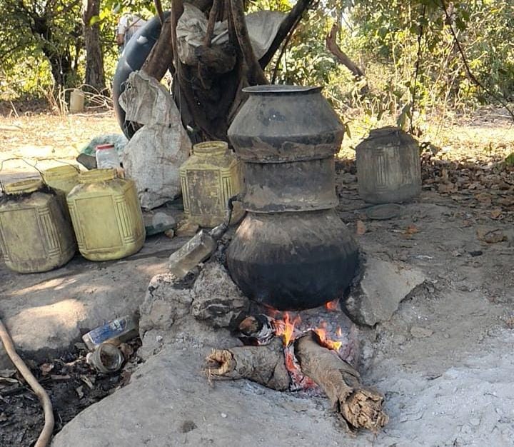 जहां आरोपीगण द्वारा भट्टी में शराब बनाते रंगे हाथ पकड़े गए एवं बना हुआ शराब जिसे डंप कर रखा गया था जिसे चुनाव में खपाने की तैयारी थी उन्हें घेराबंदी कर पकड़ा गया।