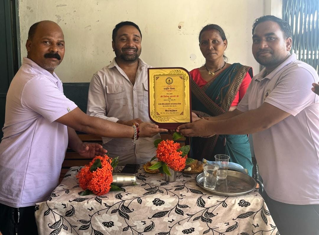 (सफाई कर्मी ),श्रीमती बेली लकड़ा (रसोइया ),श्रीमती विपदा धुर्वे(रसोइया ) को पुष्य भेट कर शिव फाउंडेशन ने सम्मानित किया।