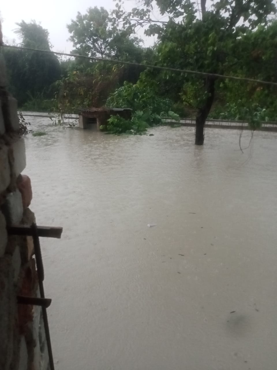 नाली का पानी लोगो के घरों तक घुस गया है लोग नाली के पानी के बहाव से डर कर अपने घरों से निकल गये ।