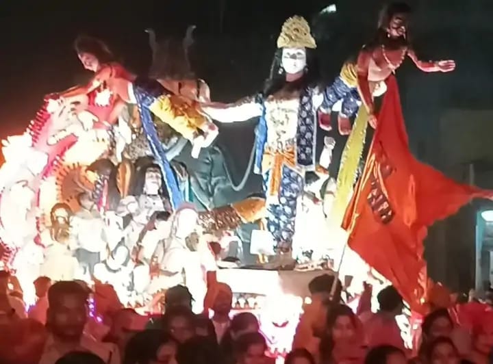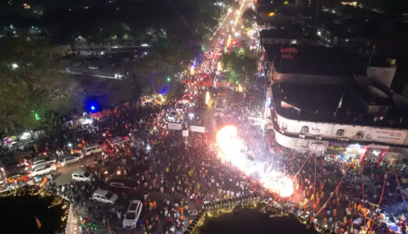 सड़क पर पैर रखने की जगह नहीं बची थी पूरा शहर जय श्री राम के नारों से गूंजता रहा।