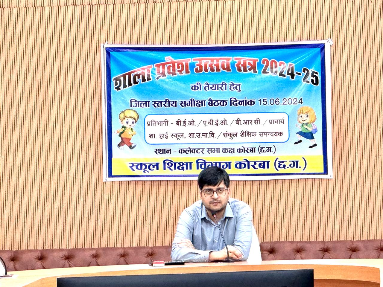 कोरबा (न्यूज उड़ान) शिक्षा विभाग की ज़िला स्तरीय समीक्षा बैठक कलेक्टोरेट सभा कक्ष में कोरबा ज़िले के सभी हाई व हायर सेकेण्डरी स्कूलों के प्राचार्यों का सीईओ ज़िला पंचायत श्री संबित मिश्रा सर के अध्यक्षता में आयोजित किया गया l