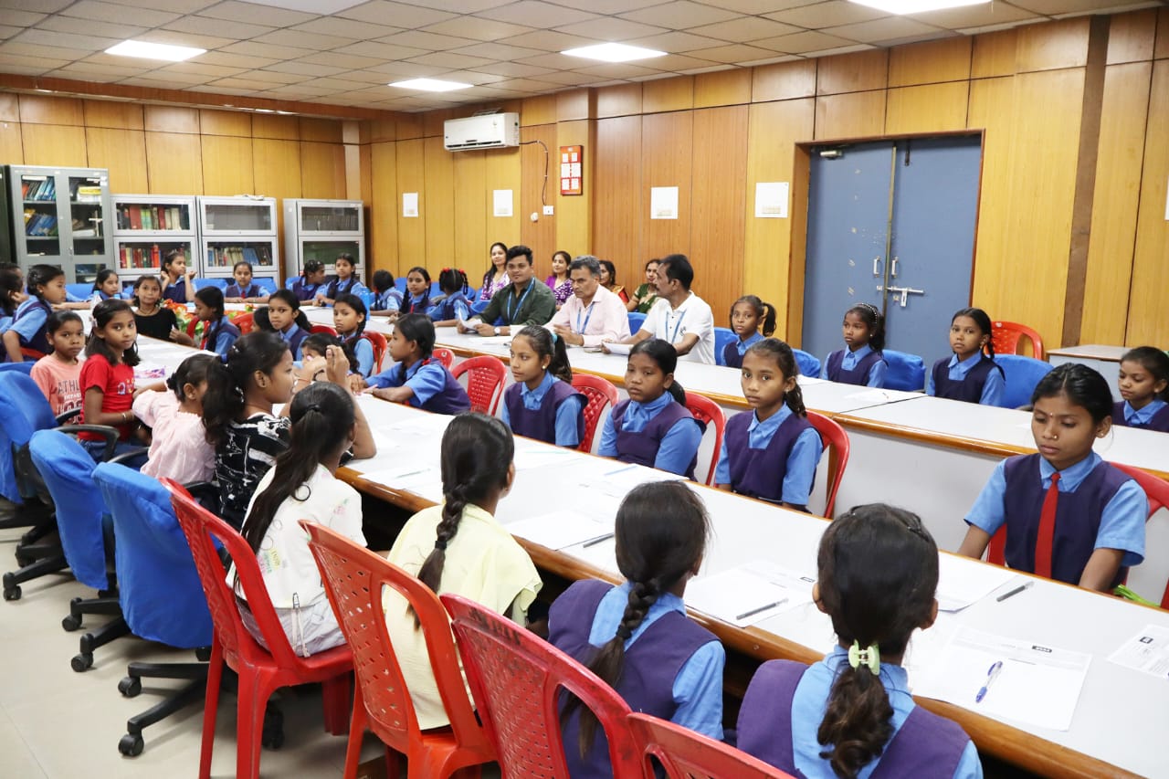Resource persons from M/s E-Solutions (nodal agency for the GEM programme at NTPC Korba), interacted with the girls and a sample test on academic subjects was conducted to assess the student's strengths, which will help in designing the curriculum for the upcoming four-week-residential GEM workshop at NTPC Korba to be held from mid-May.