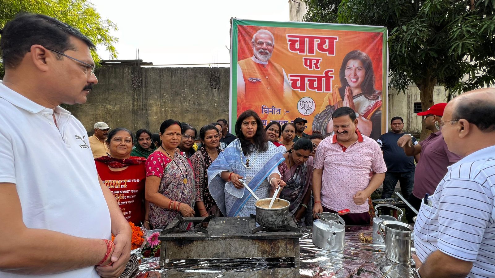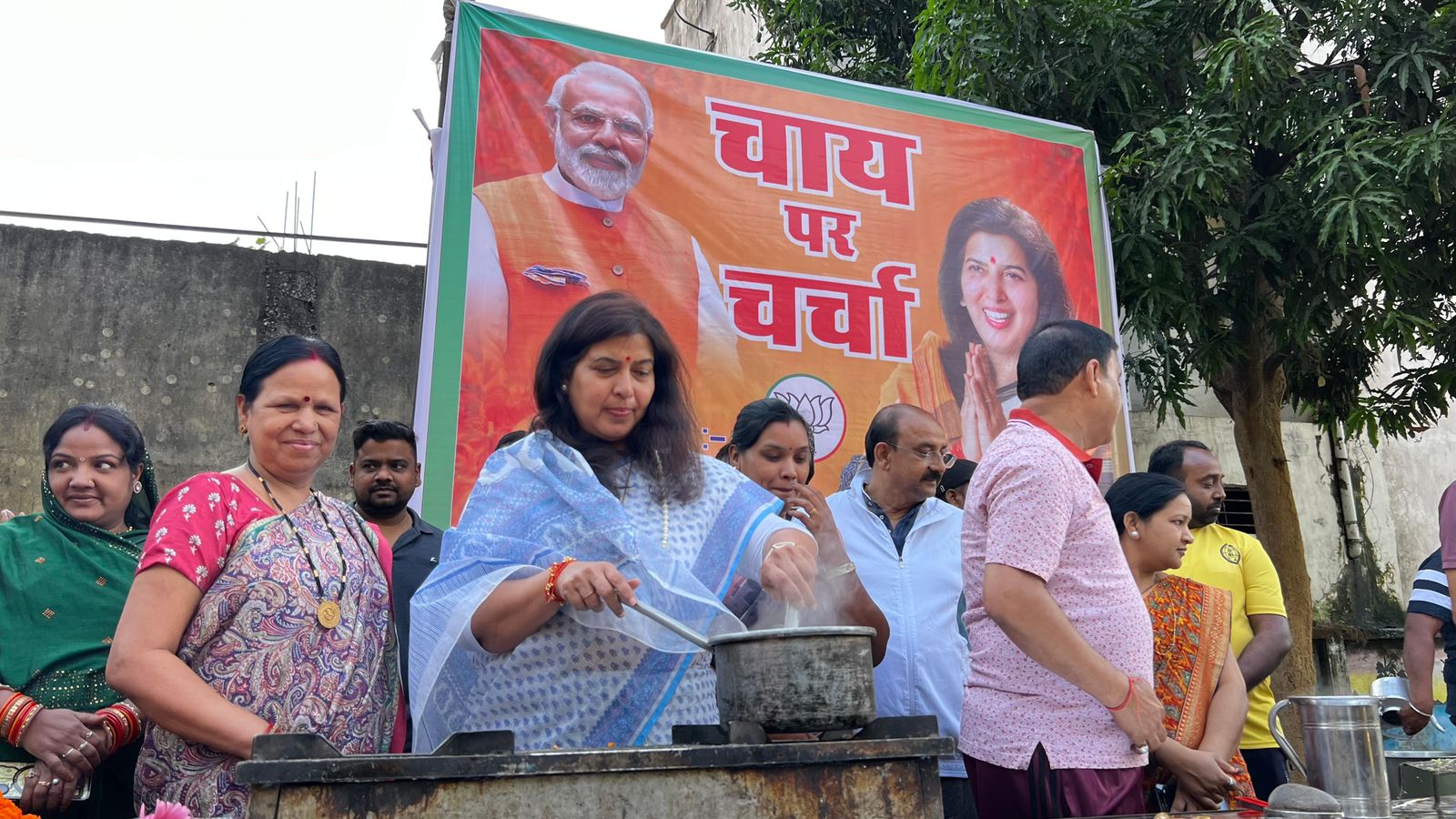 भारतीय जनता पार्टी के केंद्रीय नेतृत्व के द्वारा तय किए गए कार्यक्रम के अनुरूप 'चाय पर चर्चा' नामक इस कार्यक्रम में लोकसभा प्रत्याशी सुश्री सरोज पांडेय ने स्वयं अपने हाथों से चाय बनाकर उपस्थित गणमान्य नागरिकों को चाय पिलाई ।