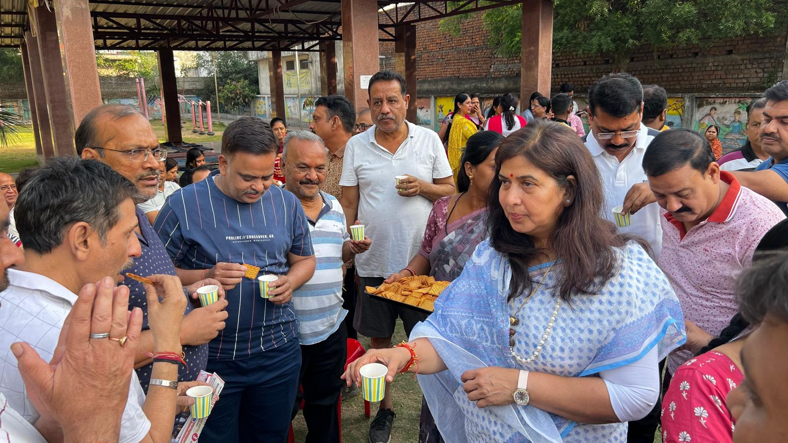: चाय पर चर्चा के लिए संत कंवर राम उद्यान पहुंची भाजपा प्रत्याशी सरोज पांडेय।