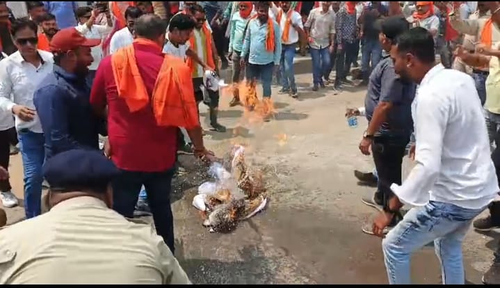 कोरबा में भाजयुमो का विशाल प्रदर्शन, कांग्रेस कार्यालय का घेराव, राहुल गांधी का पुतला दहन।