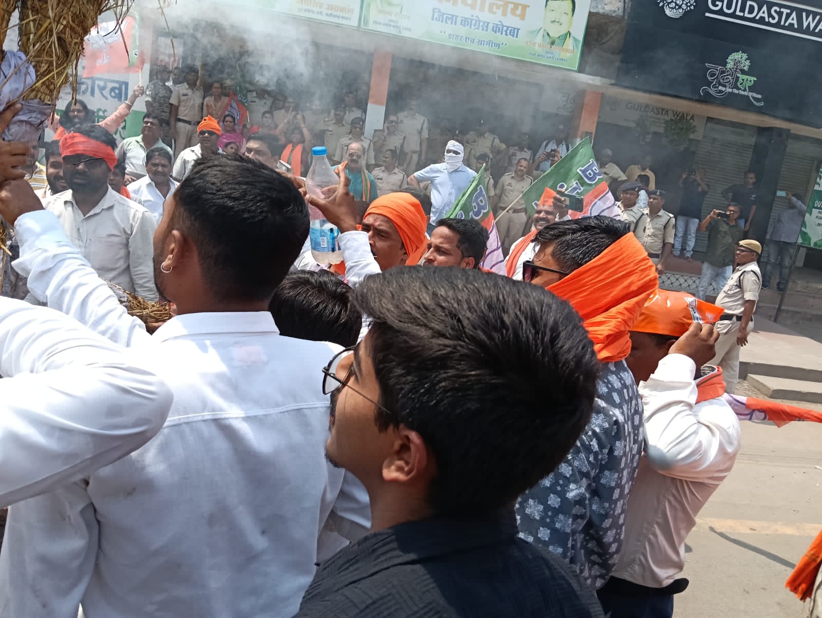: कोरबा में भाजयुमो का विशाल प्रदर्शन, कांग्रेस कार्यालय का घेराव, राहुल गांधी का पुतला दहन।