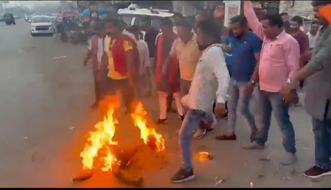 : भाजयुमो ने उदयनिधि समेत राहुल गाँधी और भूपेश बघेल का जलाया पुतला
