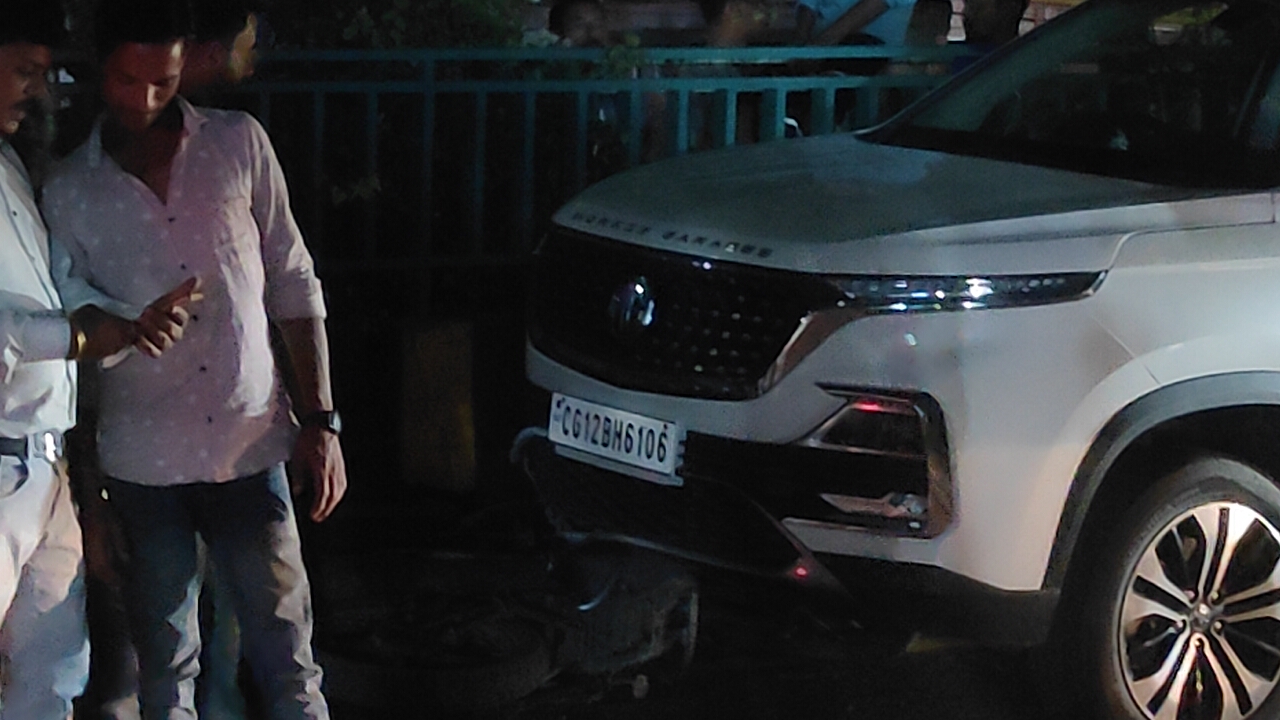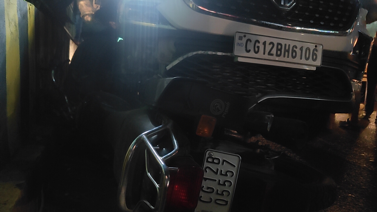 : ब्रेकिंग न्यूज छत्तीसगढ़ डिज्नी मेला के सामने विपरीत दिशा से आ रही हीरो होंडा बाइक को तेज रफ्तार mg हैक्टर कार ने जोरदार टक्कर मारते हुए 30 मीटर घसीटते हुए बाइक के नीचे फंस जाने से mg हैक्टर कार रुक गया।
