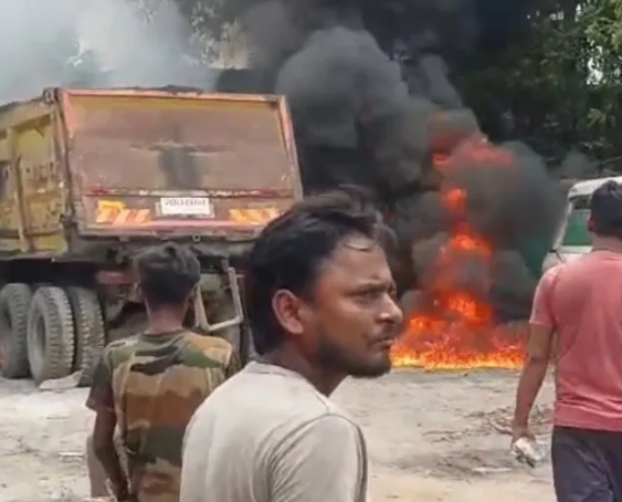 स्थानीय लोगों ने बुझाई आग हादसे के तुरंत बाद मौके पर मौजूद लोगों ने पाइप से पानी डालकर आग पर किसी तरह काबू पाया, जिससे बड़ा नुकसान टल गया।
