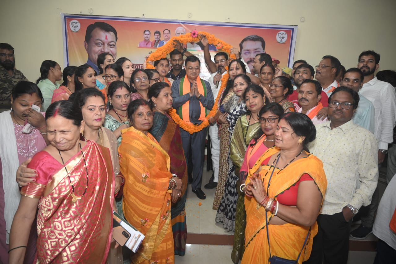 भाजपा जिला कार्यालय टीपी नगर में मंत्री श्री देवांगन का जोरदार स्वागत किया गया।