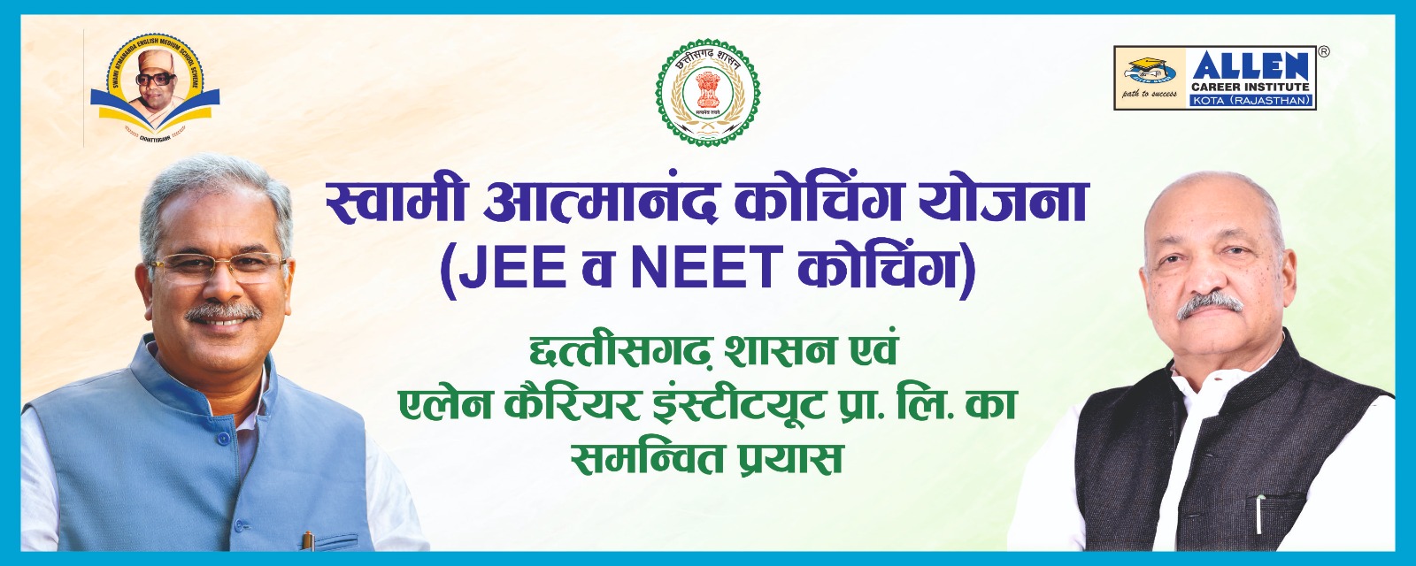 तथा कक्षा 12वीं में अध्यनरत विद्यार्थियों को प्रदेश के 146 विकासखंड मुख्यालयों तथा चार शहर रायपुर दुर्ग बिलासपुर व कोरबा सहित 150 कोचिंग सेंटर के माध्यम से राष्ट्रीय प्रवेश परीक्षा प्री मेडिकल नीट तथा प्री इंजीनियरिंग आईआईटी की बेहतर रूप से तैयारी हेतु ऑनलाइन कोचिंग प्रदान की जाएगी कोचिंग राज्य शैक्षिक अनुसंधान एवं प्रशिक्षण परिषद एस सी ई आर टी के माध्यम से प्रदान किया जाएगा