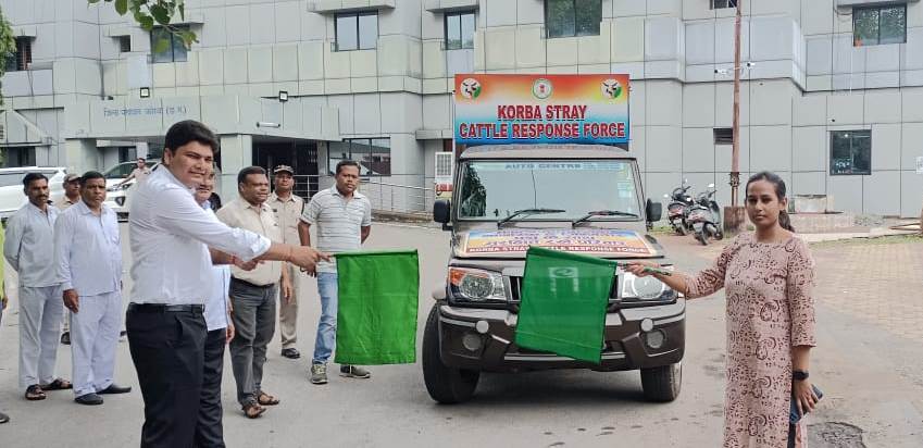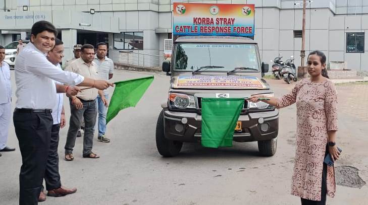 कोरबा जिला पंचायत परिसर में मंगलवार को मुख्य कार्यपालन अधिकारी जिला पंचायत श्री विश्वदीप एवं नगर निगम आयुक्त सुश्री प्रतिष्ठा ममगाई ने हरी झण्डी दिखाकर ‘स्ट्रे कैटल रिस्पांस फोर्स जागरूकता’ रथ को रवाना किया। यह जागरूकता रथ जिले के शहरी एवं ग्रामीण क्षेत्रों के मुख्य मार्गों का भ्रमण करते हुए आमजनों को जागरूक करने का कार्य करेगा।