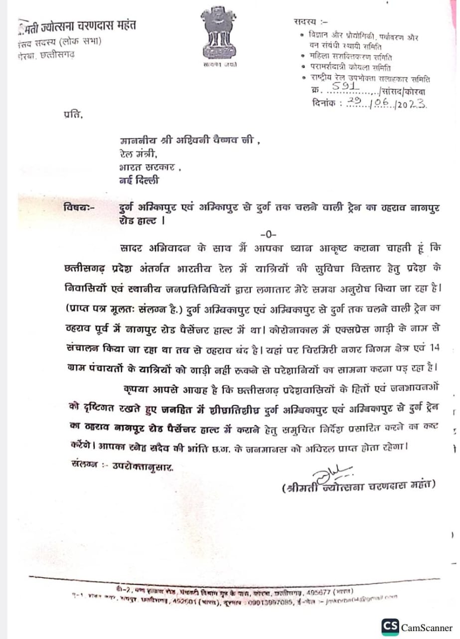 : कोरबा सांसद के प्रयासों से मिला नागपुर में ठहराव, यात्रियों को राहत
