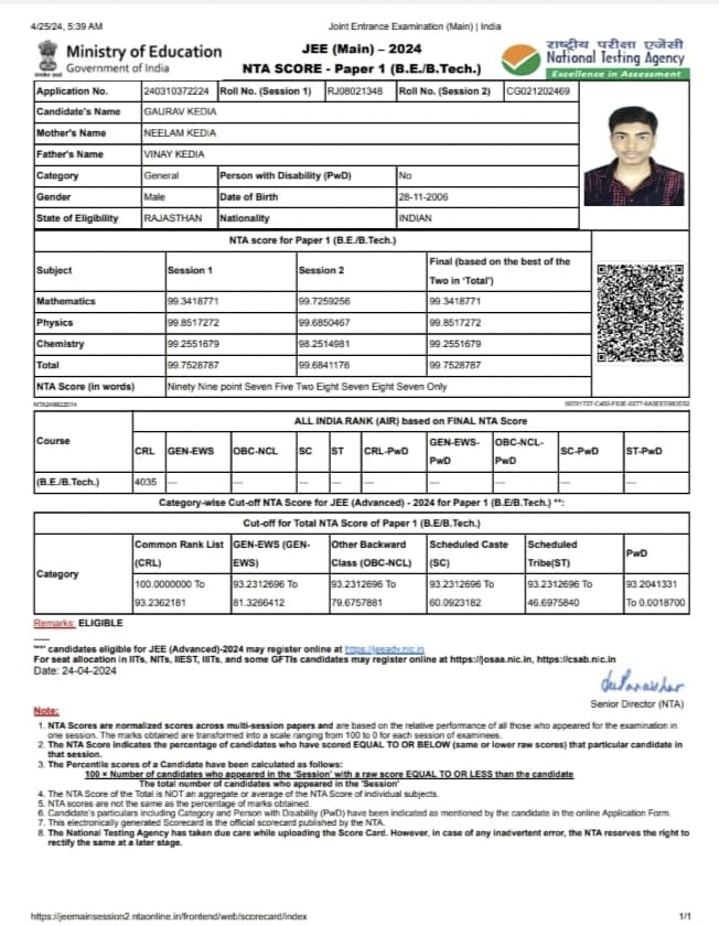 परीक्षा प्रतिस्पर्धात्मक रुप से इतना कठिन था कि 56 विद्यार्थियों के पुरे 100 अंक आए और छात्र गौरव जो कि 99.76 अंक आने के बावजूद 4035 रैंक पर पहुंच गए।