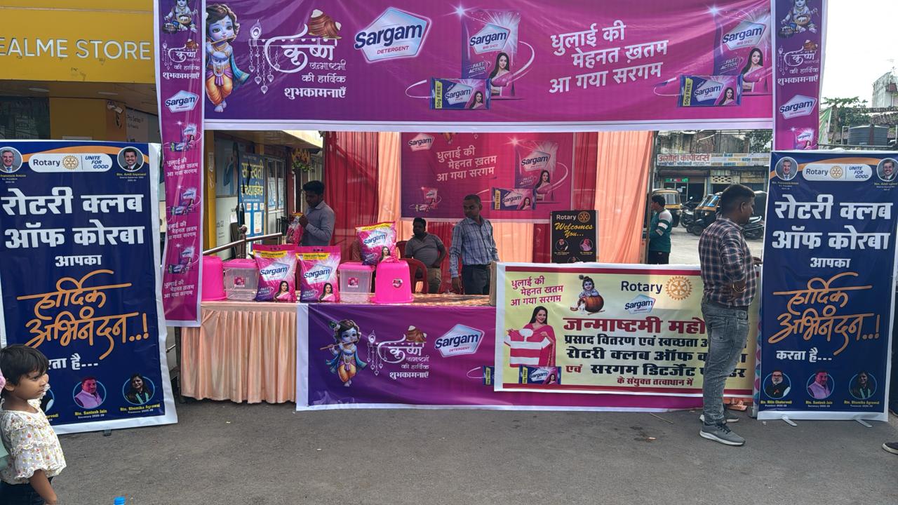 : रोटरी क्लब ऑफ कोरबा द्वारा श्रीकृष्ण जन्माष्टमी के पावन अवसर पर आज भव्य प्रसाद वितरण कार्यक्रम।