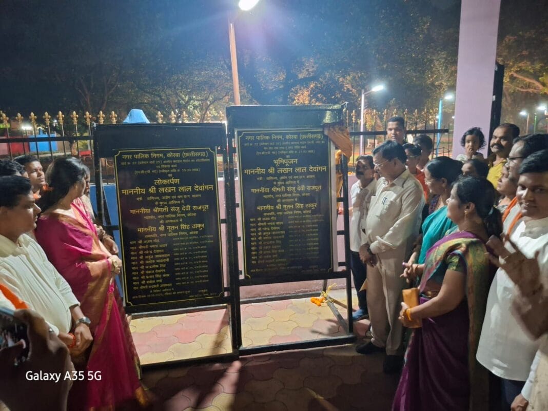 नगर पालिक निगम कोरबा द्वारा कोसाबाड़ी जोनांतर्गत वार्ड क्र. 25 के अंतर्गत स्थित कटहल गार्डन का मेन रोड तक 55 लाख रूपये की लागत से सौंदर्यीकरण व विकास का कार्य कराया गया है, जिसका लोकार्पण आज उद्योग मंत्री श्री देवांगन के करकमलों से सम्पन्न किया गया, उन्होने लोकार्पण पट्टिका का अनावरण किया तथा गार्डन को आमजनता की सेवा में समर्पित किया।