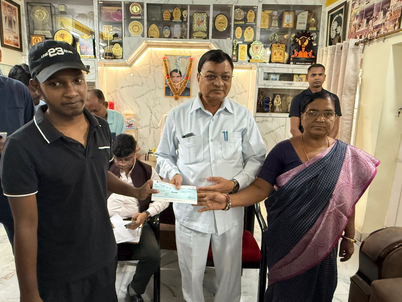 रविवार को उद्योग मंत्री श्री लखन लाल देवांगन ने कोहड़िया, कोरबा निवास कार्यालय में सभी 10 परिवार को एक एक लाख के चेक का वितरण किया।