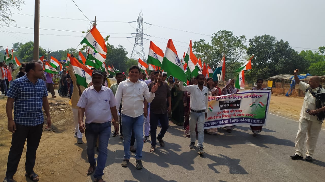 तिरंगा यात्रा में भाजपा जिला महामंत्री टिकेश्वर सिंह राठिया अगुवाई करते दिखे।इस यात्रा में शिविर में पहुचे सभी लोग शामिल हुए।भारत माता की जयवंदे मातरम् नारों से जोश और गर्व का माहौल बना रहा।