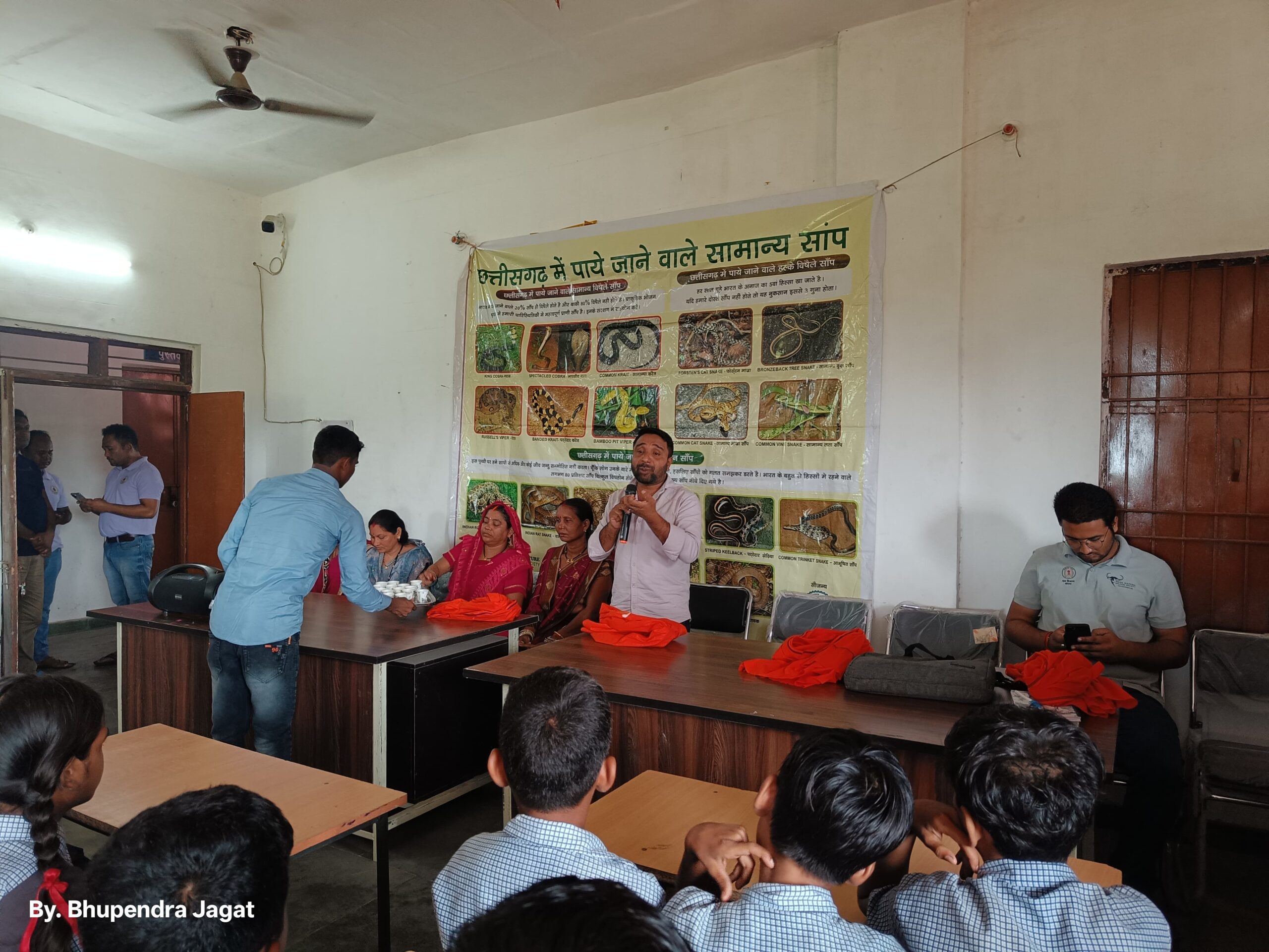 श्री जितेन्द्र सारथी, संस्था के मुख्य वन्यजीव रेस्क्यू विशेषज्ञ, ने सांपों की प्रजातियों, उनके पारिस्थितिकी में योगदान, आम मिथकों और बचाव तकनीकों पर गहन जानकारी दी।