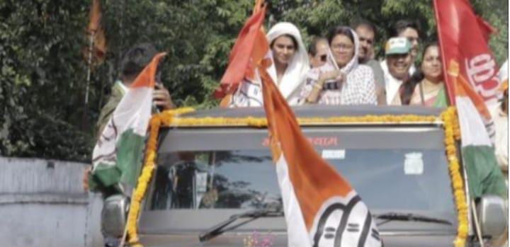 रोड-शो में कांग्रेस प्रत्याशी ज्योत्सना महंत खुली जीप में सवार थीं और क्षेत्रवासियों का अभिनंदन किया।