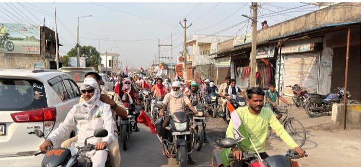 कांग्रेस के झंडों के साथ विभिन्न यूनियन के झंडे बाइक में लहराते दिखे।