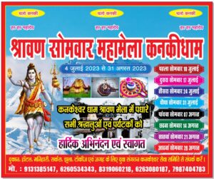 इस बार अधिक मास होने के कारण श्रवण मास 2 महीने का है तो कनकेश्वर धाम में इस बार श्रवण सोमवार मेला 10 जुलाई से 31 अगस्त 2023 अर्थात 2 माह यानी 8 सोमवार को मेला लग रहा है युवा संगठन कनकी ने श्रद्धालुओं से निवेदन कर रहा है की ऐसे गलत अफहवाहो को ध्यान न दे और श्रवण सोमवार में बाबा कनकेश्वर महादेव का दर्शन कर मेला का आनंद उठाये।