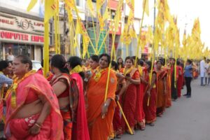 : श्री राम के उद्घोष से गूंज उठा कोरबा नवनिर्मित राम दरबार की भव्य निशान यात्रा का